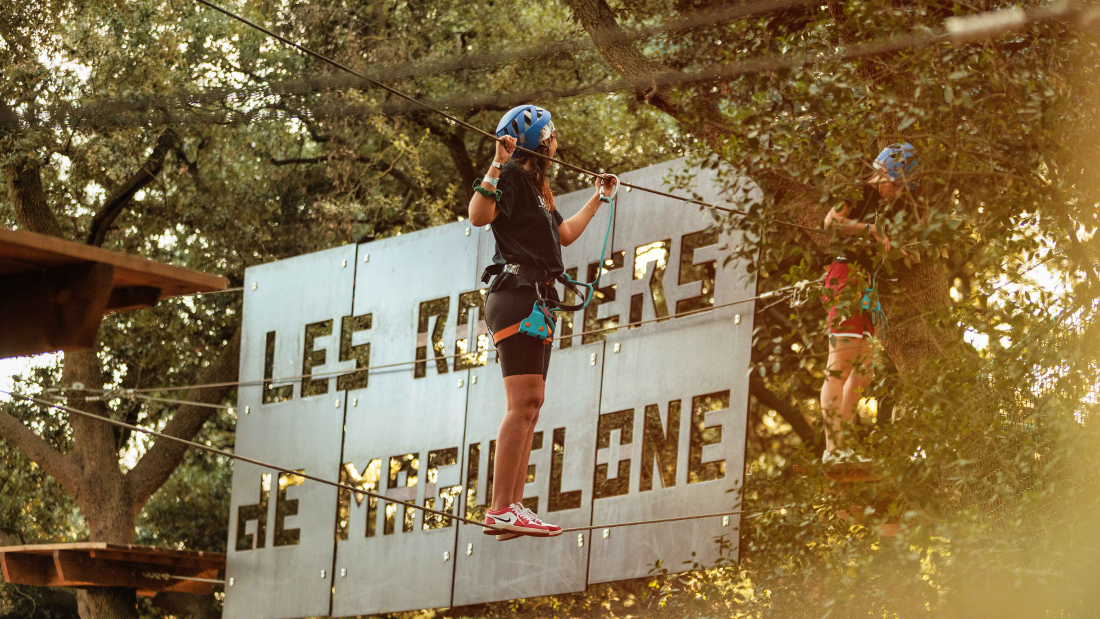 Dans un cadre naturel et ombragé, 19 parcours accrobranche dont 6 accessibles pour les 3-6 ans s’offrent à vous. Que vous soyez en famille ou entre amis, nos parcours s'adaptent à tous les âges et tous les niveaux. Les plus petits trouveront des parcours adaptés à leur taille, garantissant une aventure sécurisée et divertissante. Les adultes, quant à eux, pourront repousser leurs limites sur plus de 150 ateliers : tyroliennes, ponts de singe, saut de tarzan...